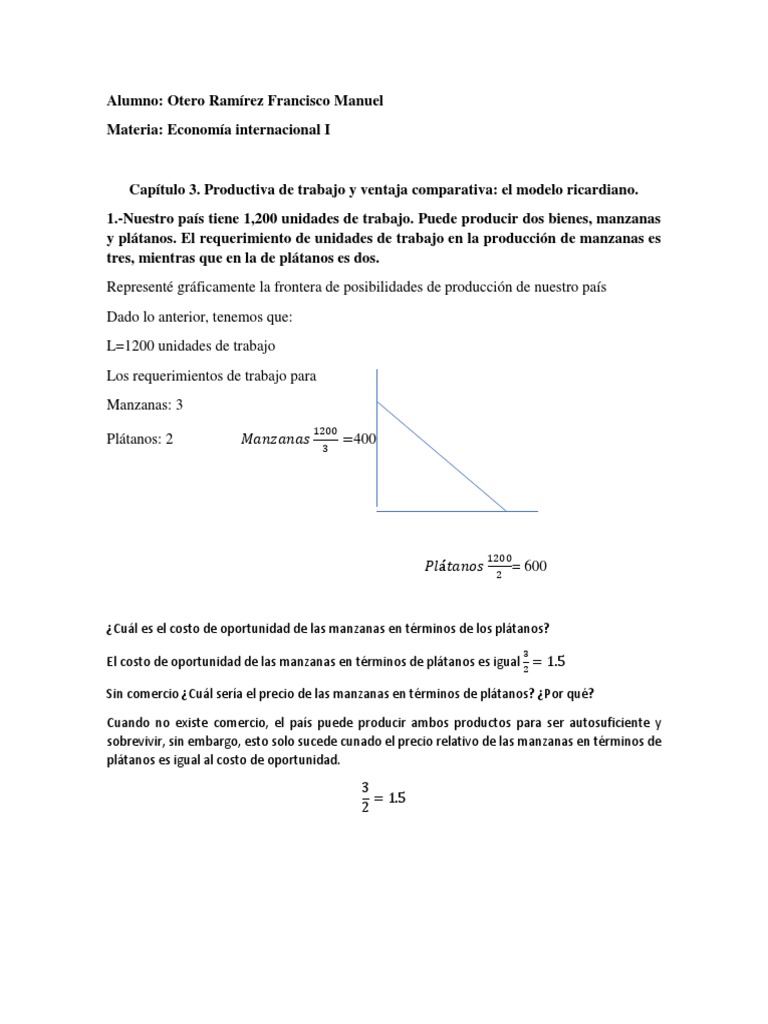 1.-Nuestro país tiene 1,200 unidades de trabajo. Puede producir dos bienes, manzanas