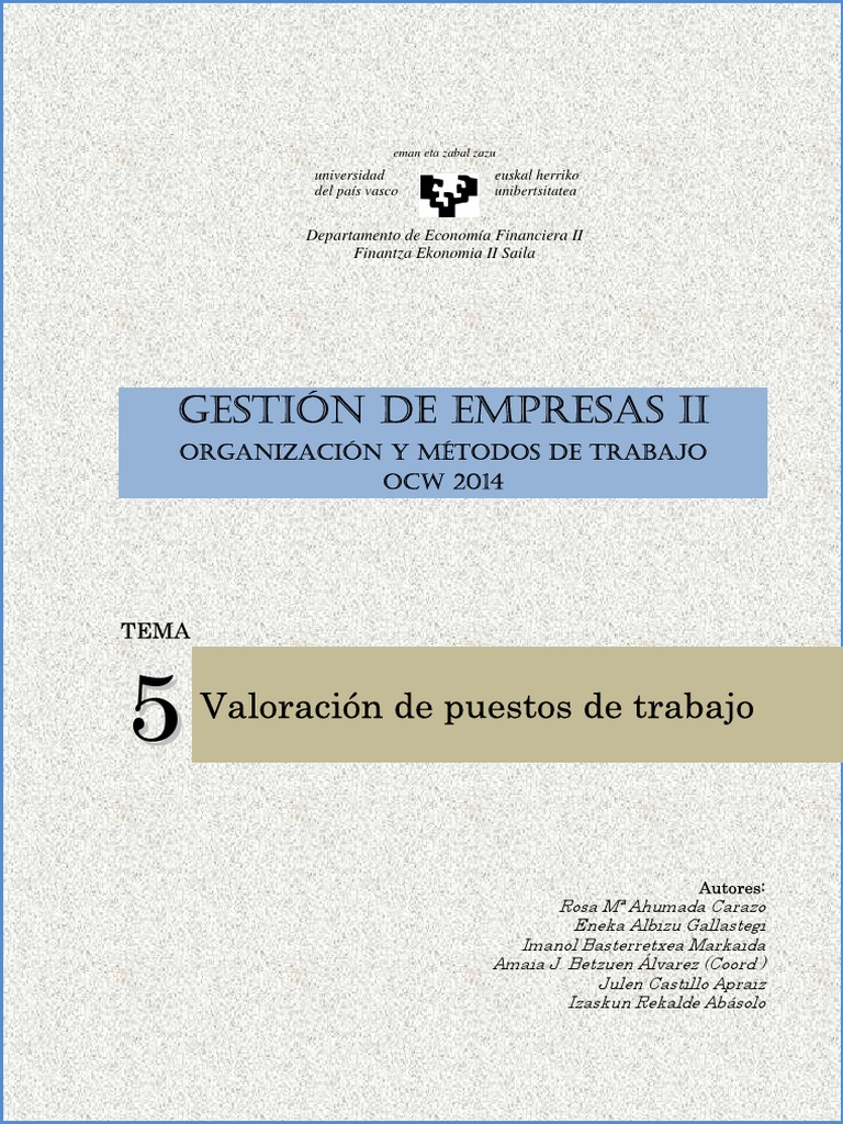 Alzola, A. (1989): Política remunerativa y valoración de puestos. LKS: Arrasate.