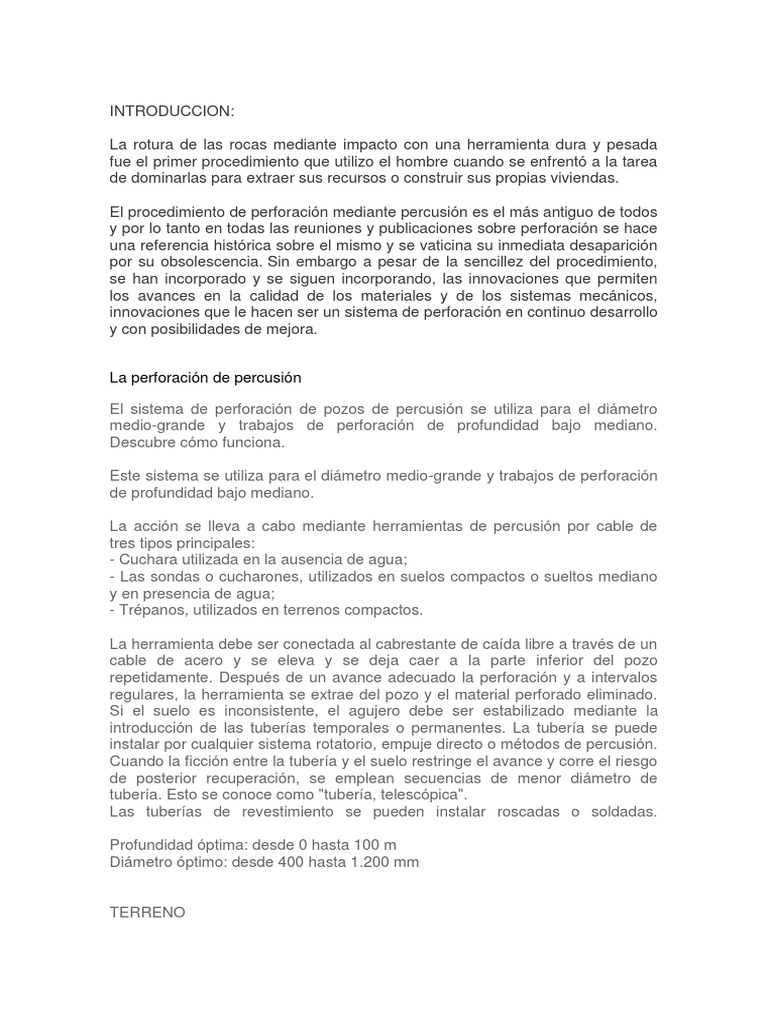 El procedimiento de perforación mediante percusión es el más antiguo de todos