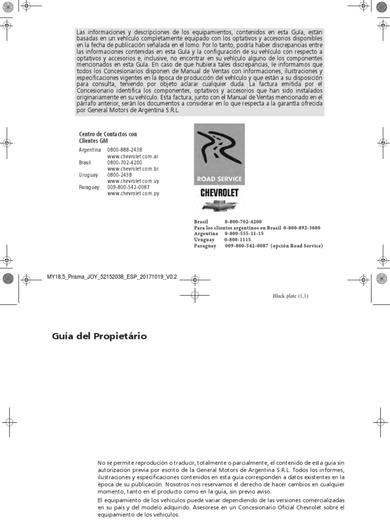 Manual del propietario del Chevrolet Prisma JOY MY18.5 (GMSA-Localiza-