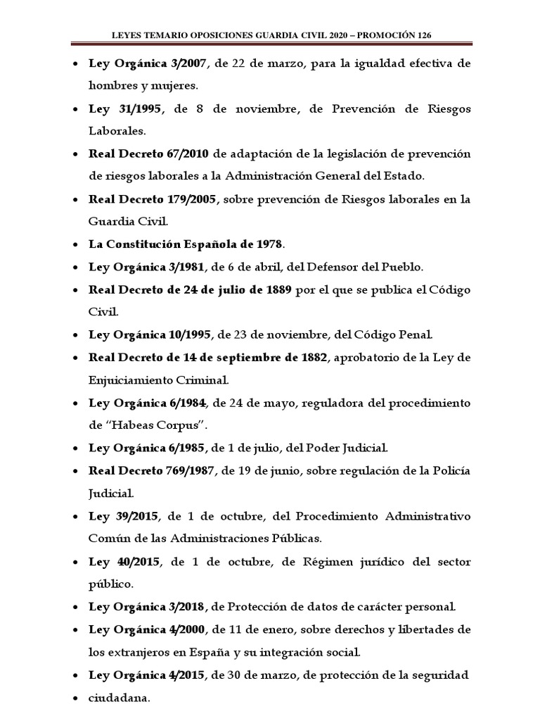 LEYES TEMARIO OPOSICIONES GUARDIA CIVIL 2020 – PROMOCIÓN 126