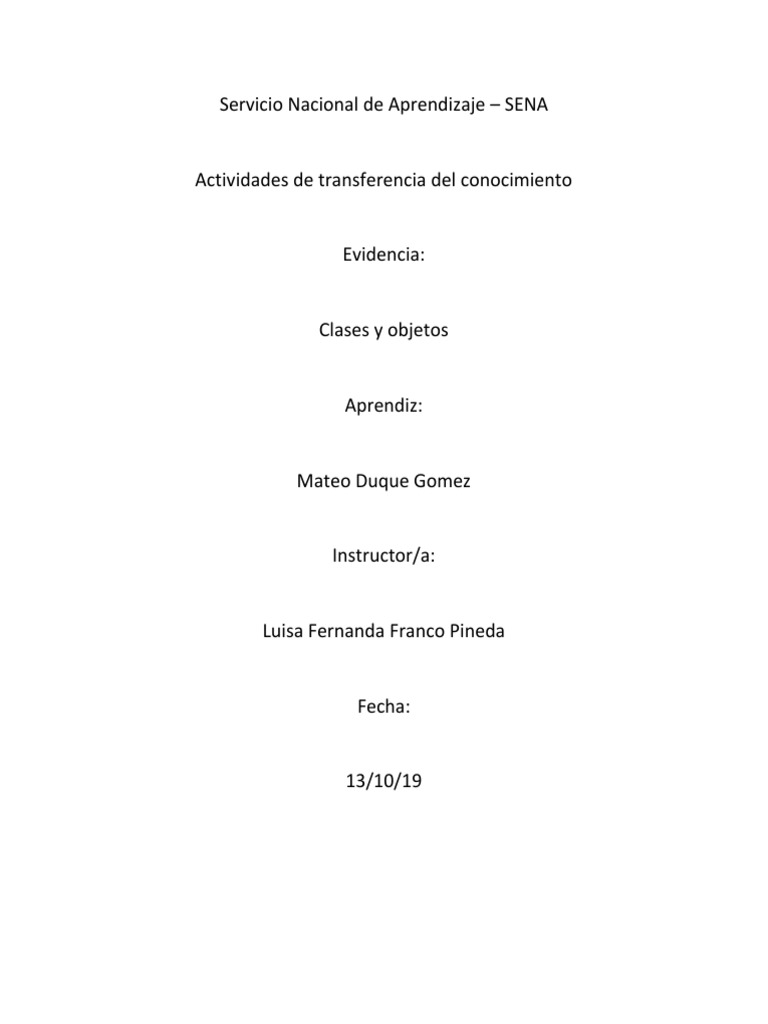 habilidades en el manejo de clases y objetos, por lo que se le encomienda