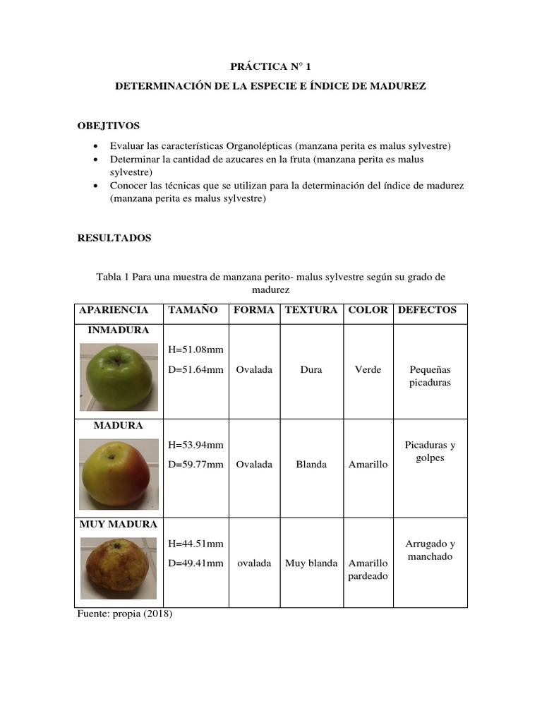 Tabla 1 Para una muestra de manzana perito- malus sylvestre según su grado de