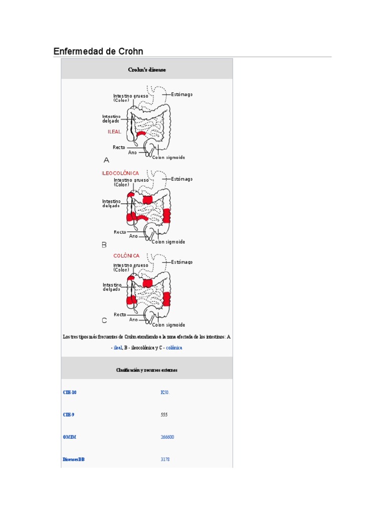 produciendo inflamación. Frecuentemente la parte afectada es el íleon o tramo final del intestino delgado, aunque la enfermedad puede