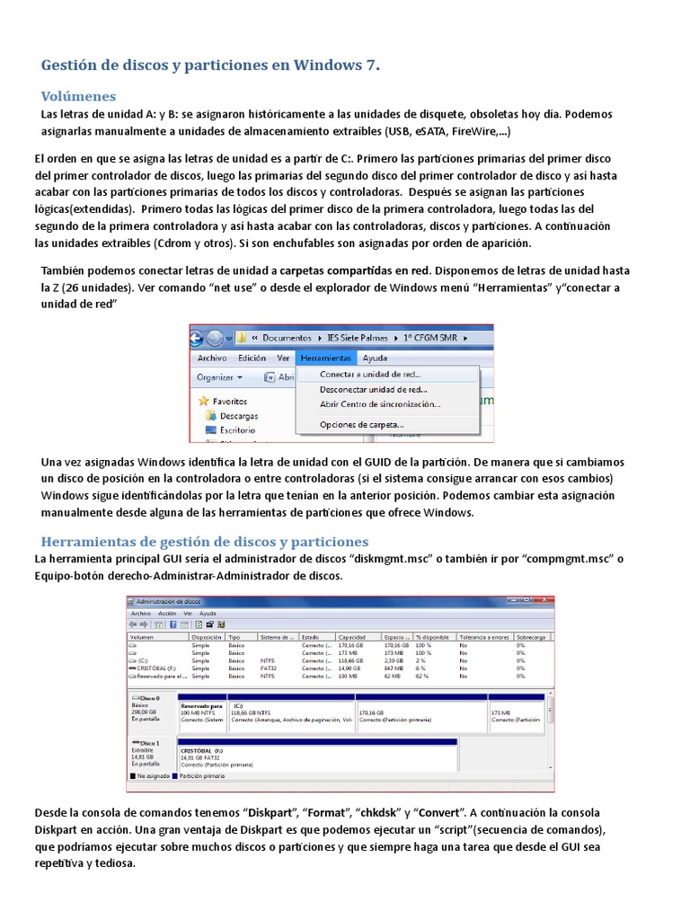 la Z (26 unidades). Ver comando “net use” o desde el explorador de Windows menú “Herramientas” y“conectar a