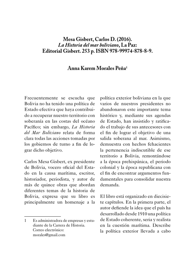 Bolivia, expresa que su libro es El libro está organizado en diecisie-