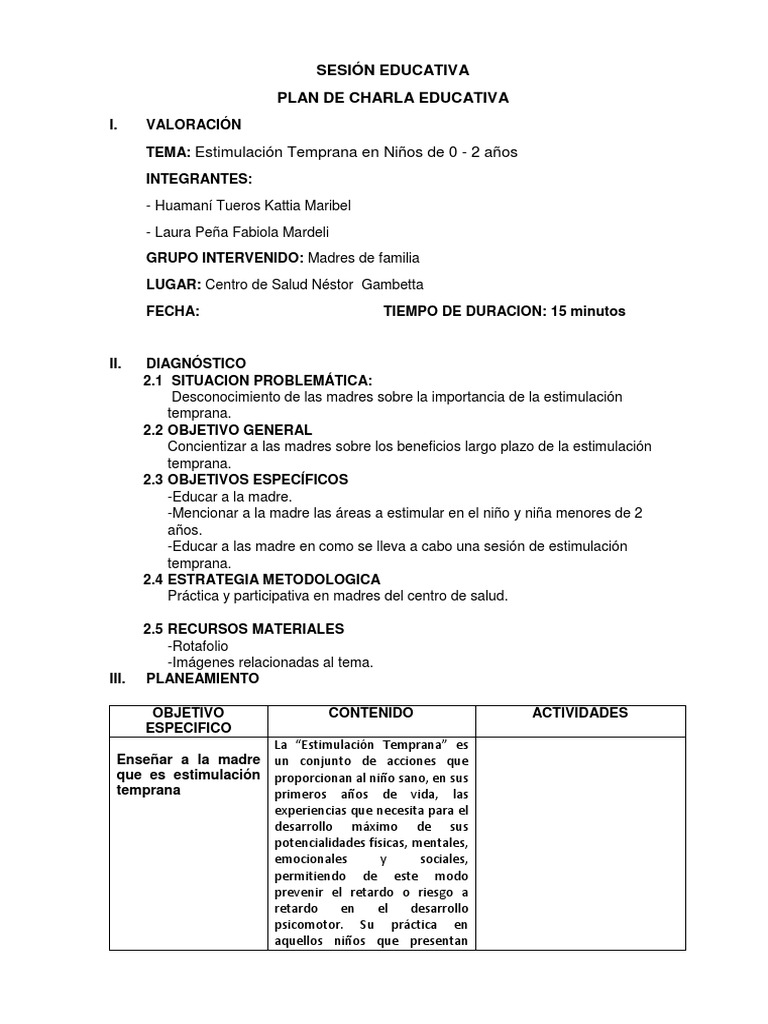 PLAN DE CHARLA EDUCATIVA