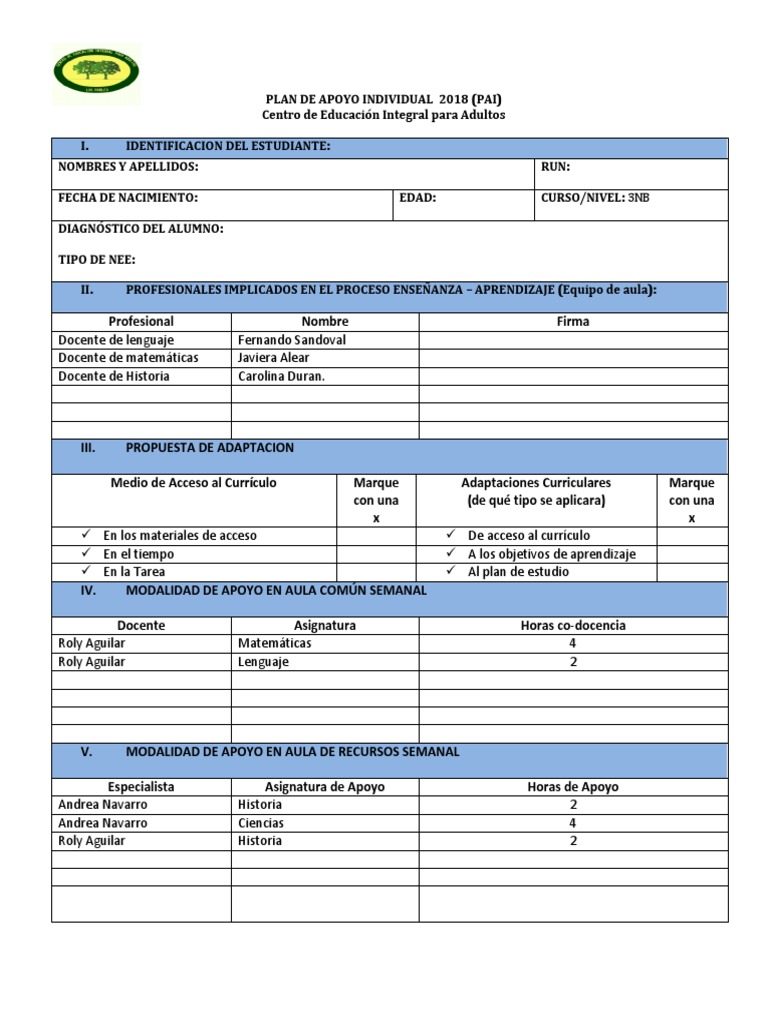 PLAN DE APOYO INDIVIDUAL 2018 (PAI)