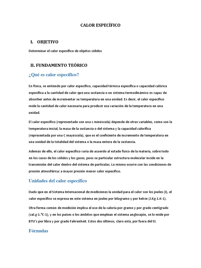 específico es igual al cociente de la capacidad calórica y la masa. Sin embargo, cuando se aplica