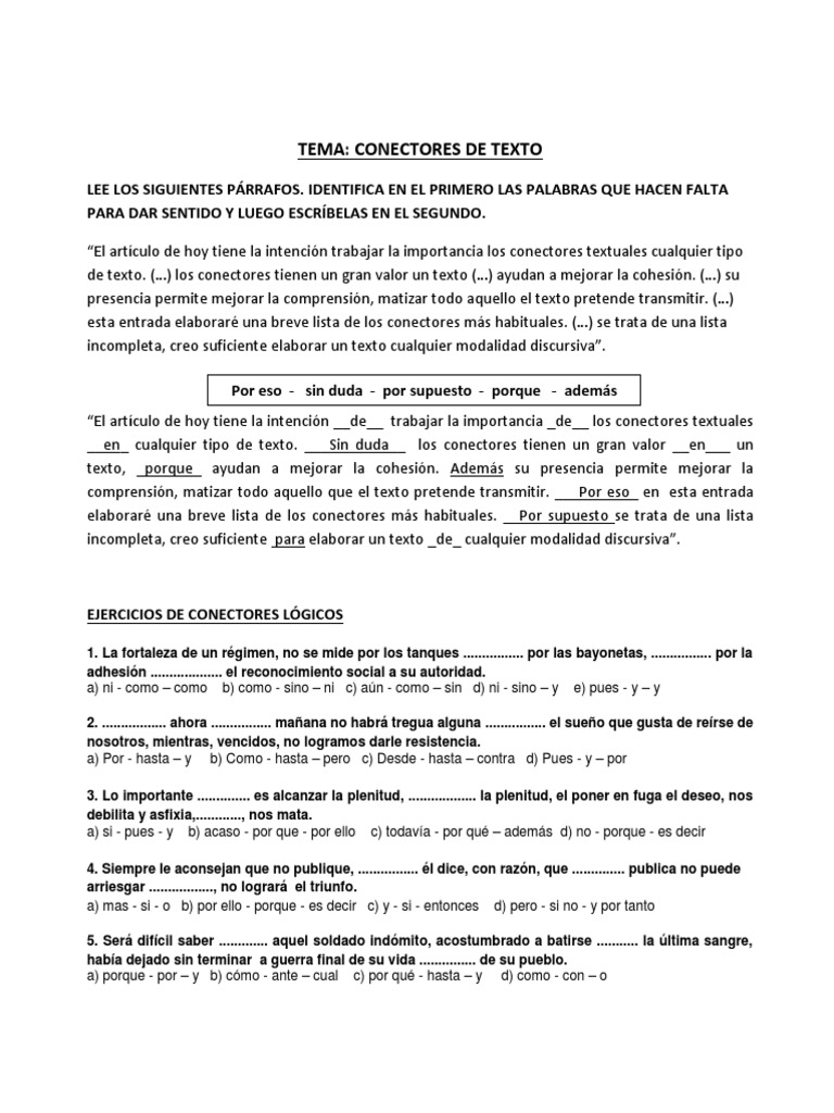 de texto. (…) los conectores tienen un gran valor un texto (…) ayudan a mejorar la cohesión. (…) su