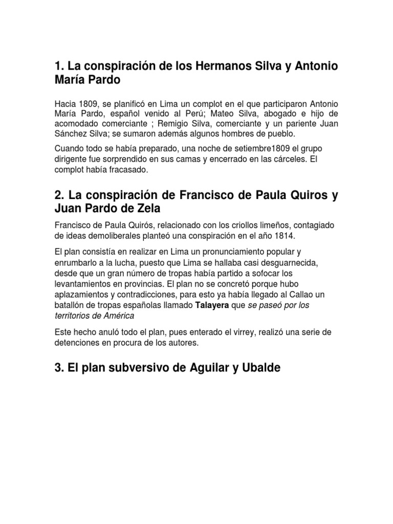 2. La conspiración de Francisco de Paula Quiros y