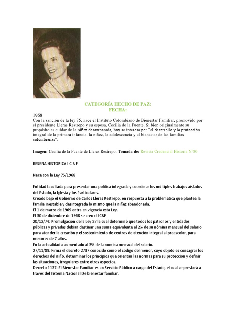 Con la sanción de la ley 75, nace el Instituto Colombiano de Bienestar Familiar, promovido por
