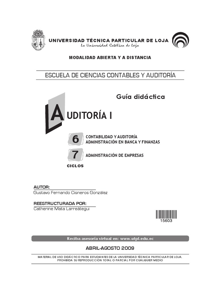 establecer la comunicación pedagógica. La guía didáctica de Auditoría I está diseñada para orientar a