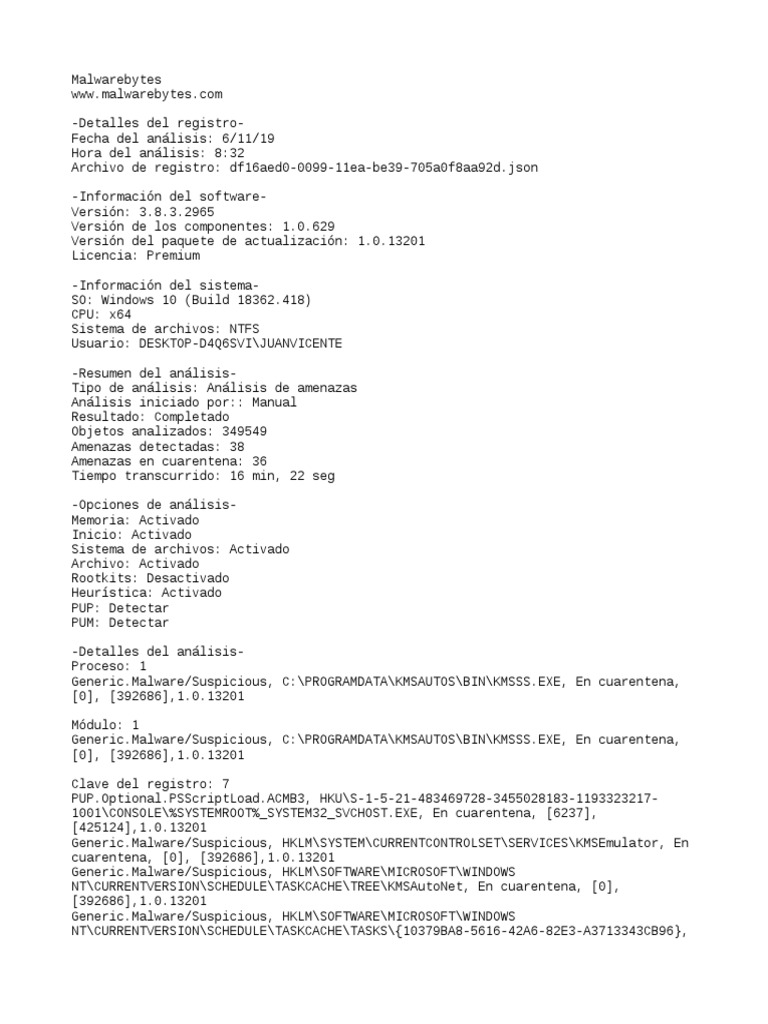 Generic.Malware/Suspicious, C:\WINDOWS\SYSTEM32\TASKS\KMSAutoNet, En cuarentena,