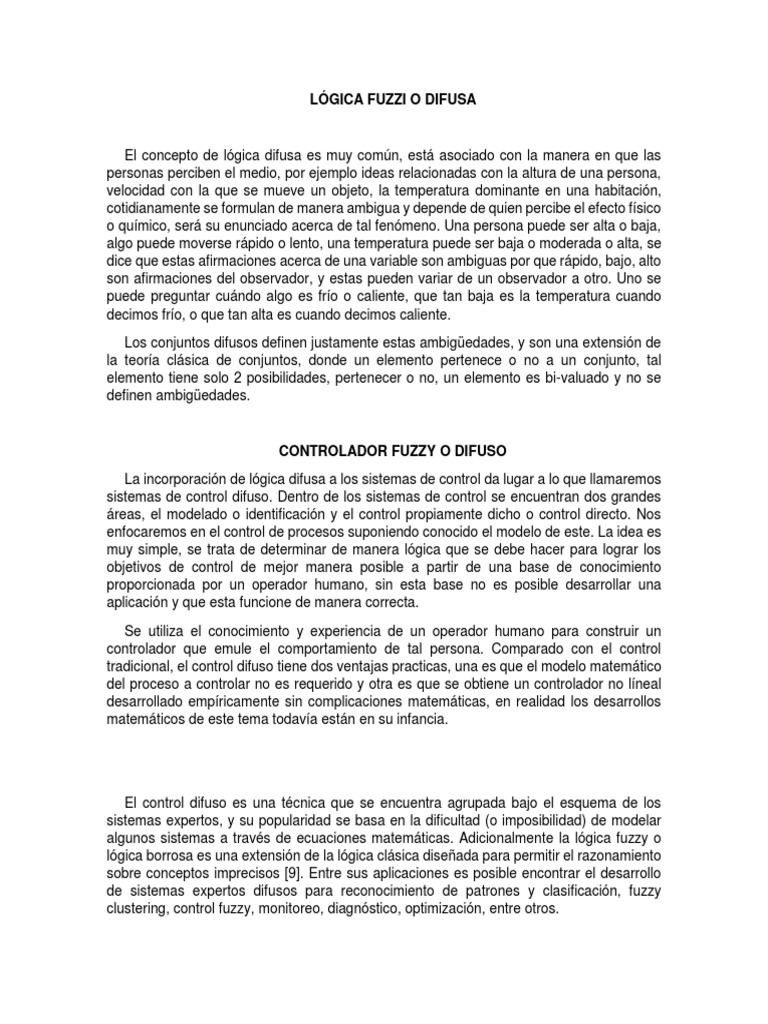 algunos sistemas a través de ecuaciones matemáticas. Adicionalmente la lógica fuzzy o