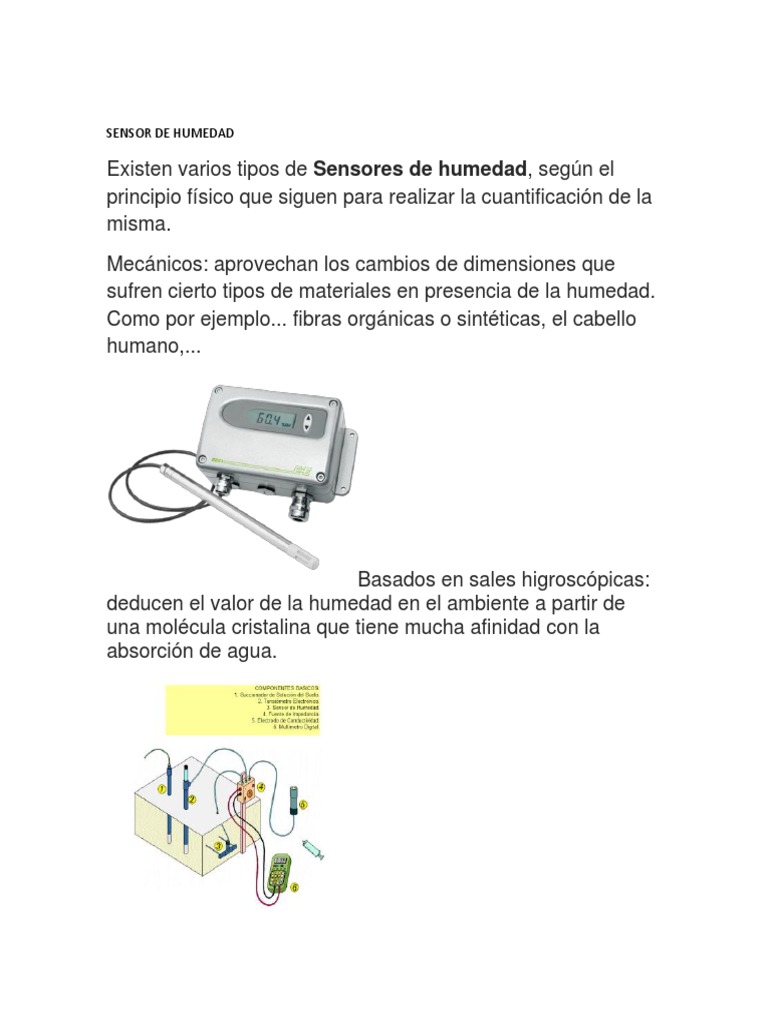 Existen varios tipos de Sensores de humedad, según el