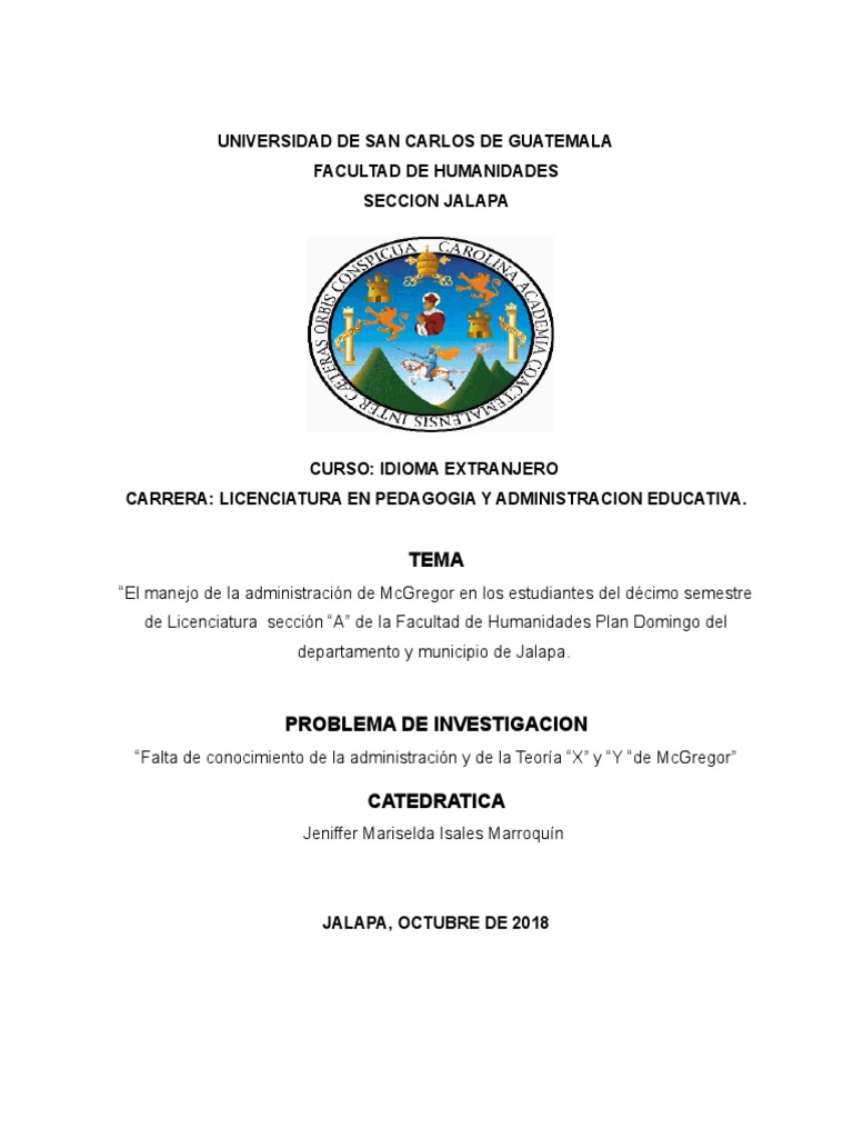 “El manejo de la administración de McGregor en los estudiantes del décimo semestre