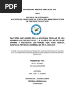 de Licenciatura sección “A” de la Facultad de Humanidades Plan Domingo del