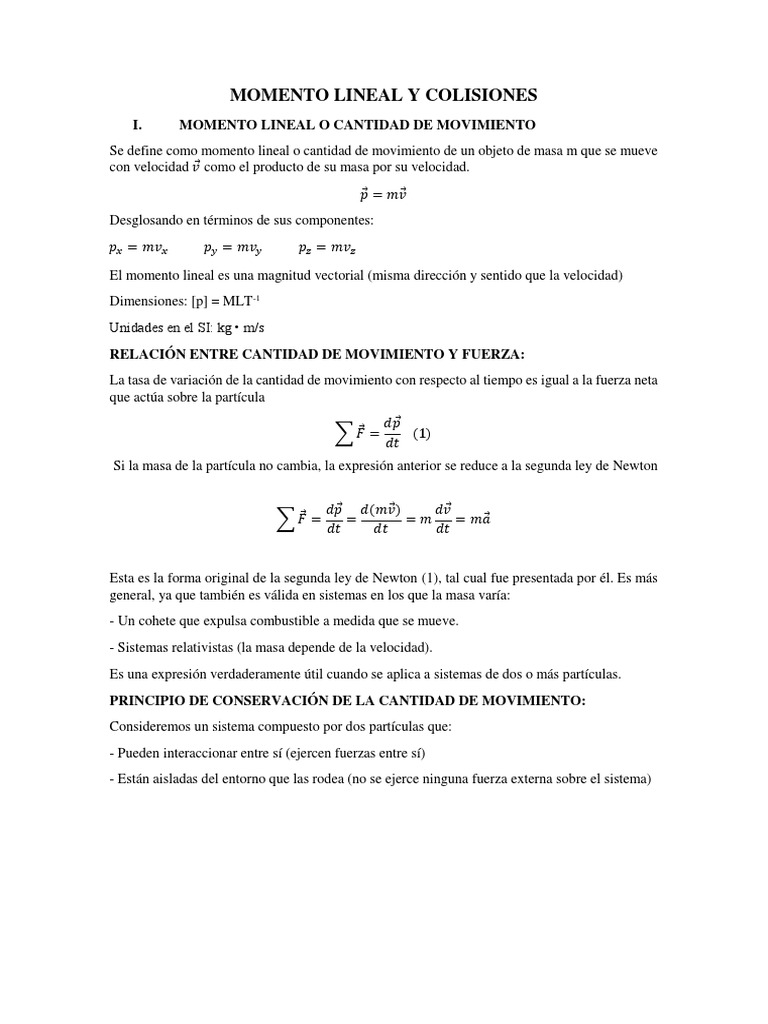 I. MOMENTO LINEAL O CANTIDAD DE MOVIMIENTO