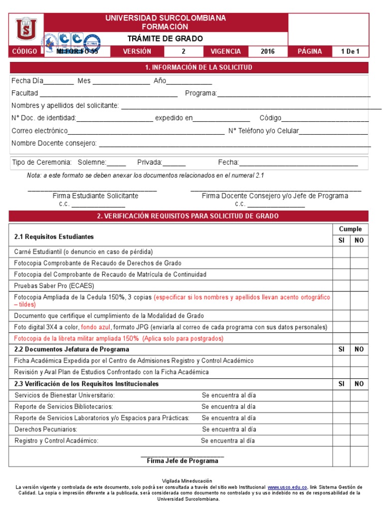La versión vigente y controlada de este documento, solo podrá ser consultada a través del sitio web Institucional www.usco.edu.co, link Sistema Gestión de