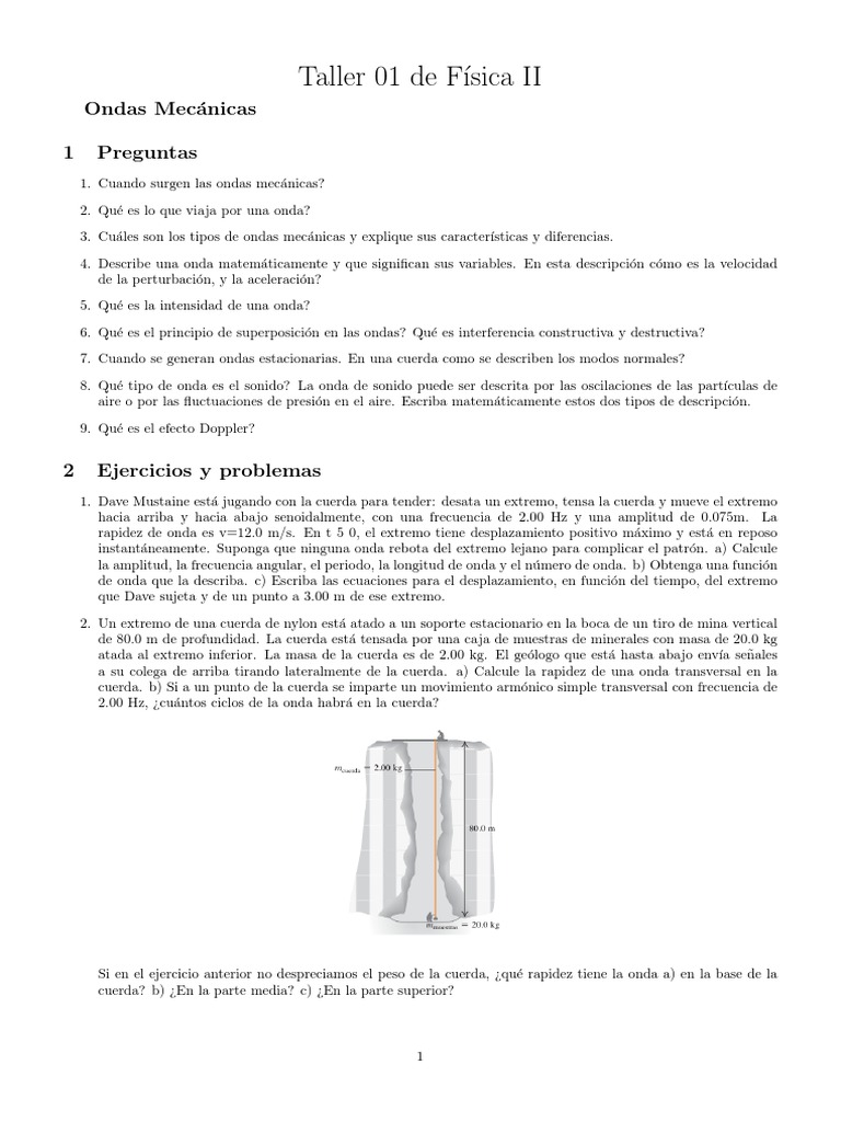 cuerda, b) si ahora usted desea que el instrumento resuene en el armónico n=2, cuál es la fuerza de tensión FT