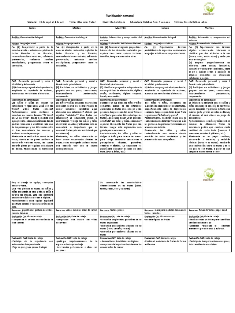 Semana: 30 de sept. al 4 de oct. Tema: ¡Qué ricas frutas! Nivel: Medio Menor Educadora: Catalina Arias Ahumada Técnico: Gissela Balboa Labbé
