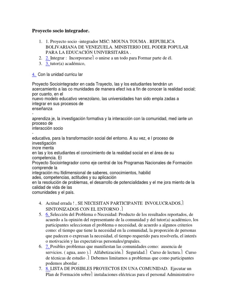 1 Con la unidad curricular Proyecto Sociointegrador en cada Trayecto, las y los