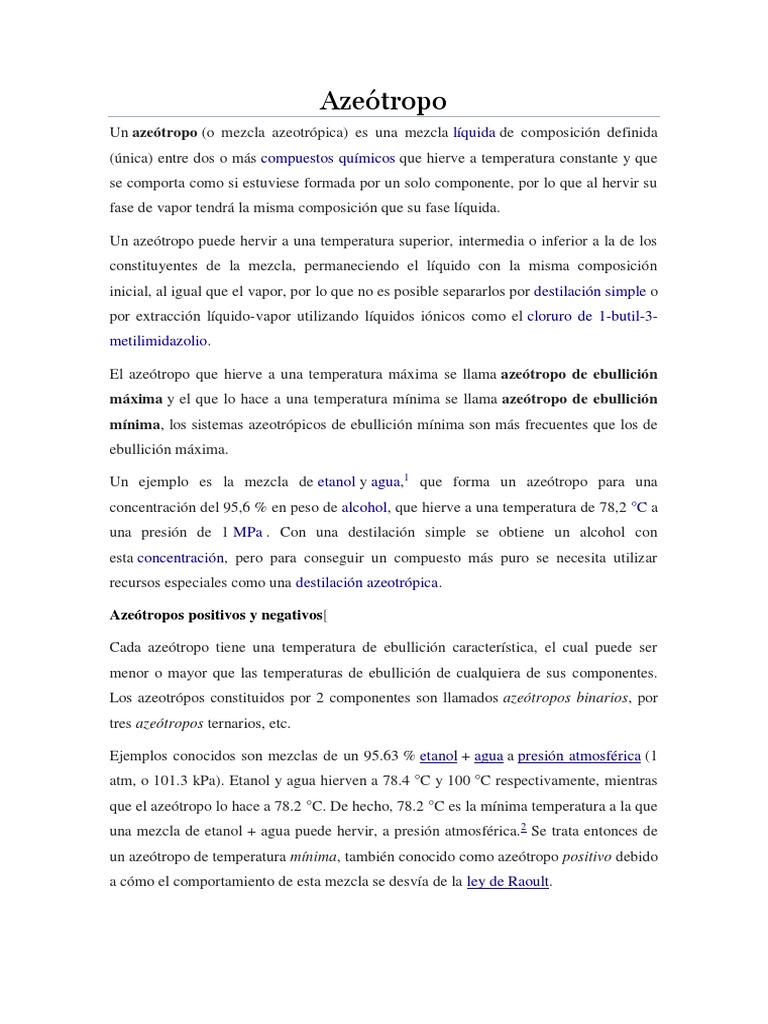 Un azeótropo (o mezcla azeotrópica) es una mezcla líquida de composición definida