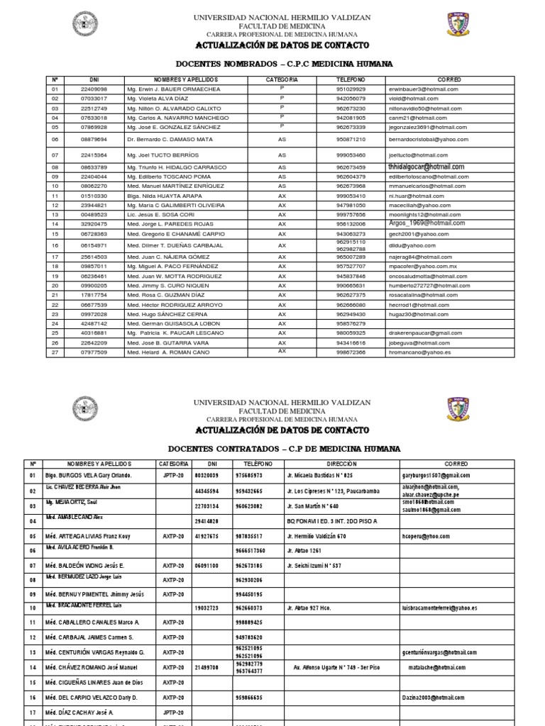 DOCENTES CONTRATADOS – C.P. MEDICINA HUMANA - SEDE LIMA