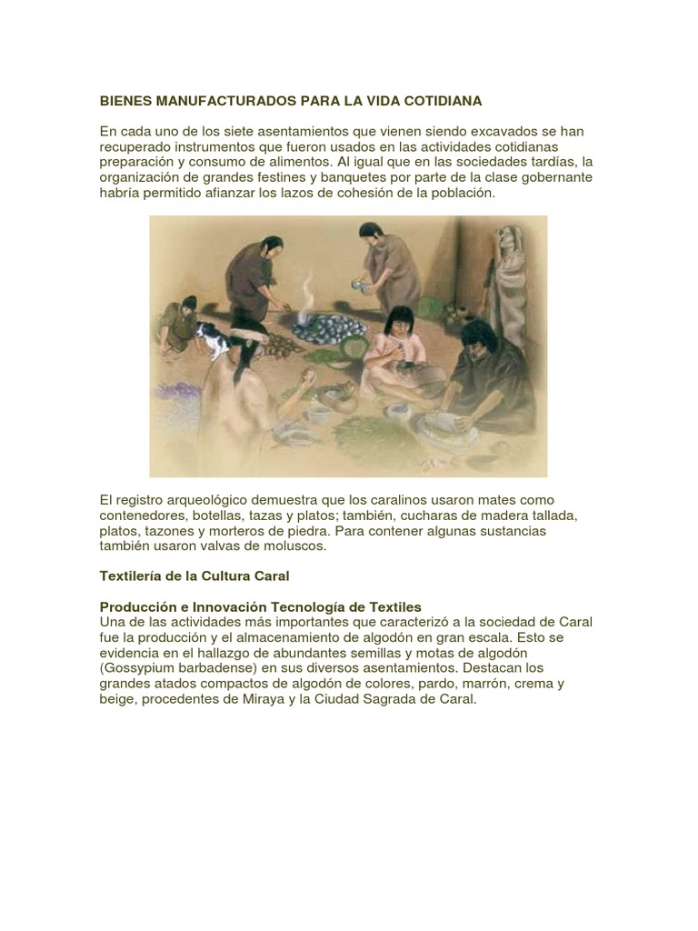 sociedad Caral. Consistió en la manufactura de cestas, sogas, esteras y,