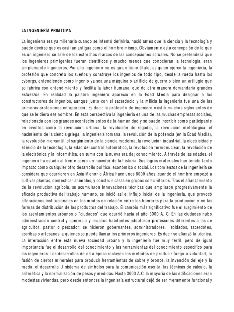 impacto como cualquier otro desarrollo político, económico o social. Los comienzos de la ingeniería se