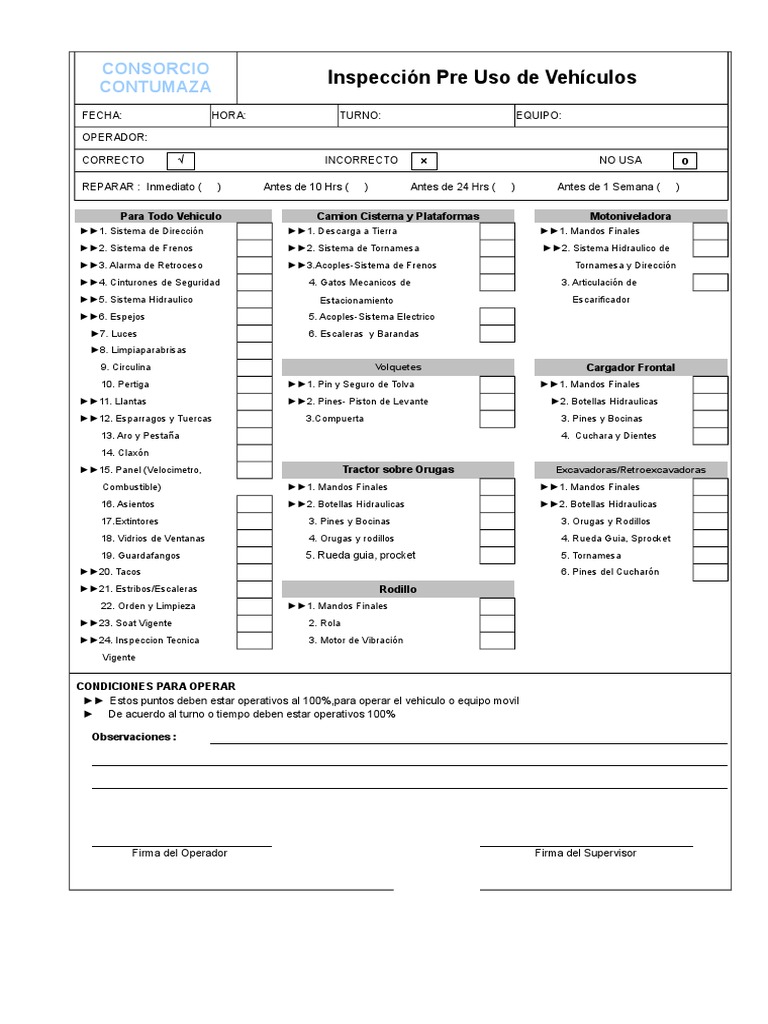 Inspección Pre Uso de Vehículos