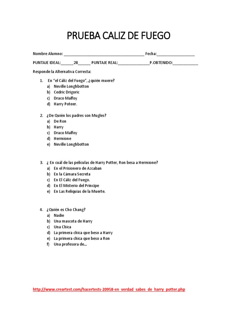 PRUEBA CALIZ DE FUEGO