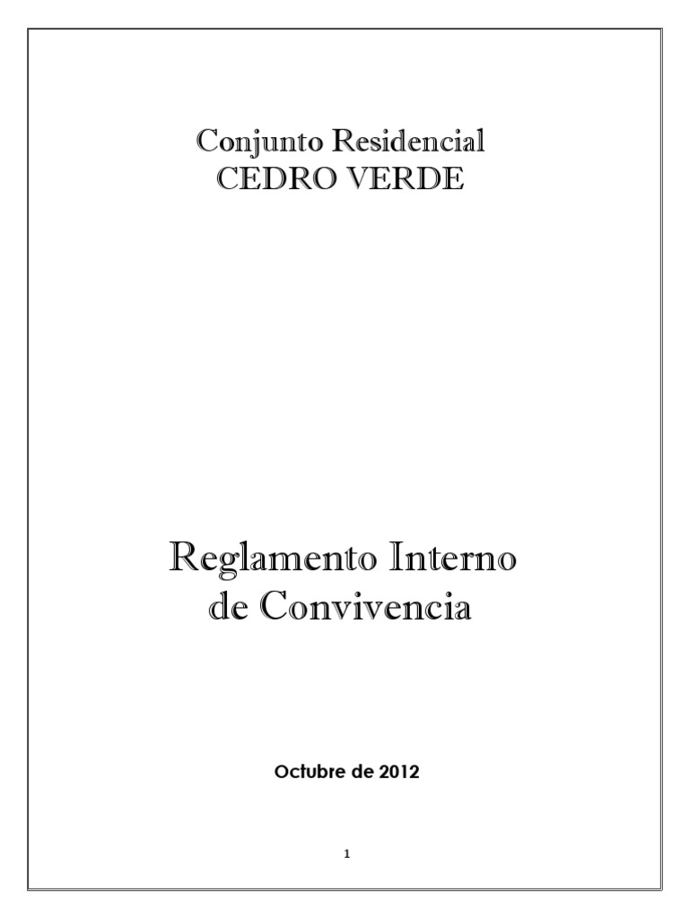 Reglamento Interno de Convivencia se aplica a todos los residentes y demás personas que usan, gozan y