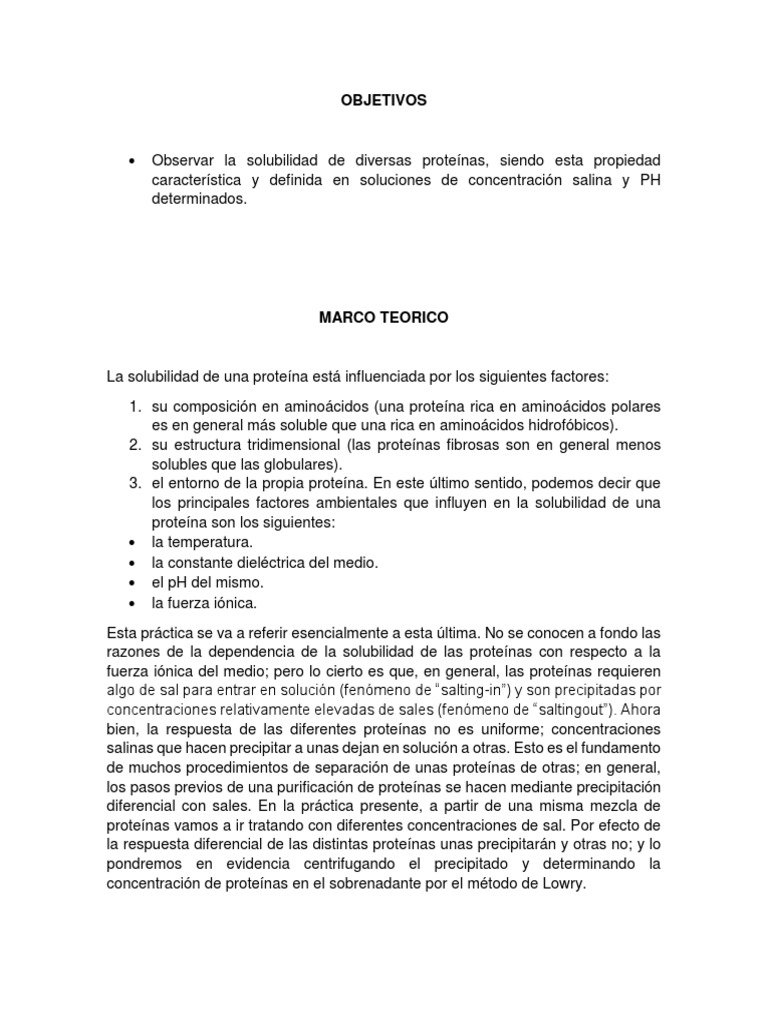 1. ¿Qué se entiende por solubilidad de las proteínas y que factores pueden