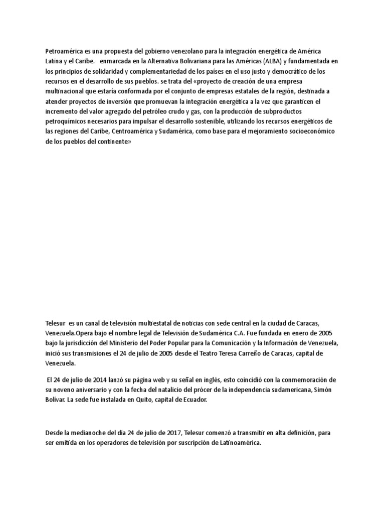 Latina y el Caribe. enmarcada en la Alternativa Bolivariana para las Américas (ALBA) y fundamentada en