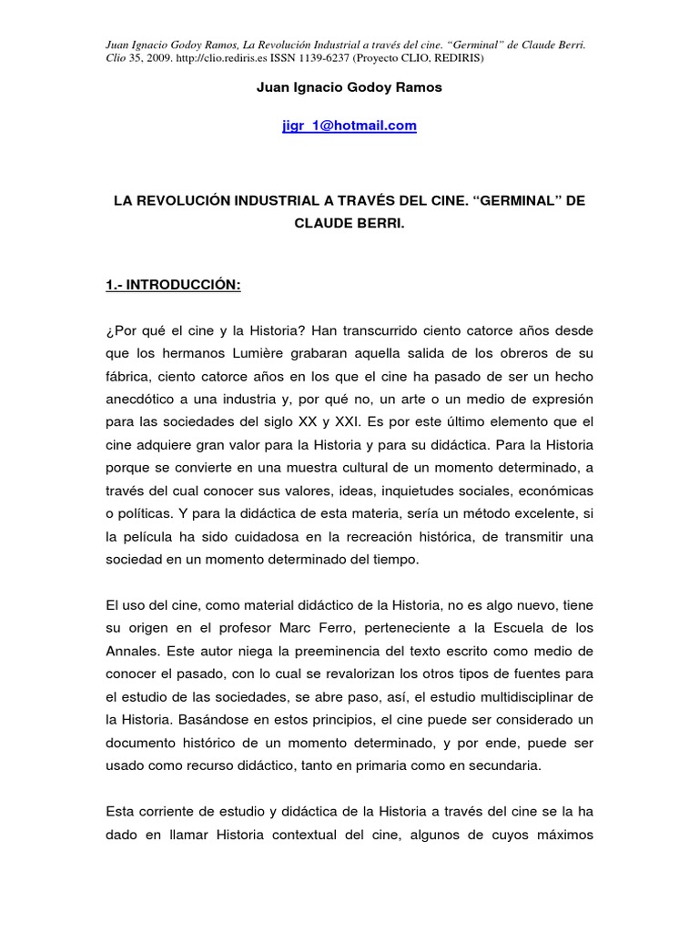 Juan Ignacio Godoy Ramos, La Revolución Industrial a través del cine. “Germinal” de Claude Berri.