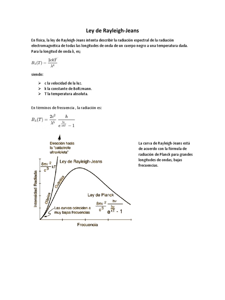 En física, la ley de Rayleigh-Jeans intenta describir la radiación espectral de la radiación