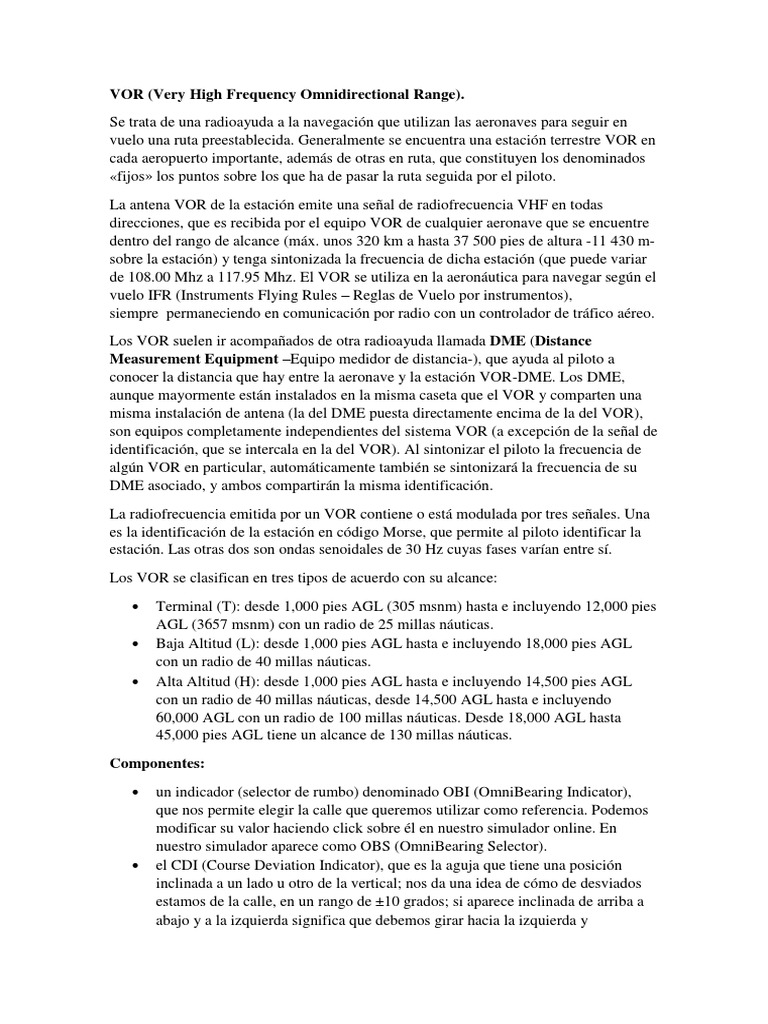 de 108.00 Mhz a 117.95 Mhz. El VOR se utiliza en la aeronáutica para navegar según el
