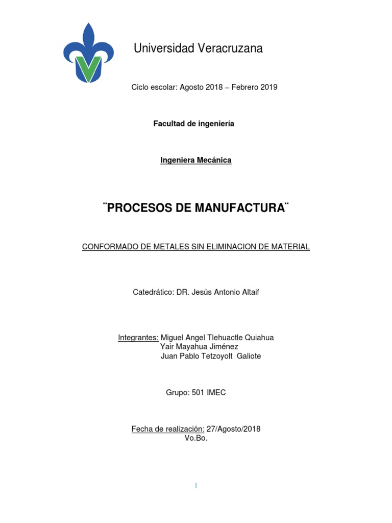 En el siguiente proyecto hablaremos acerca de conformado de materiales sin