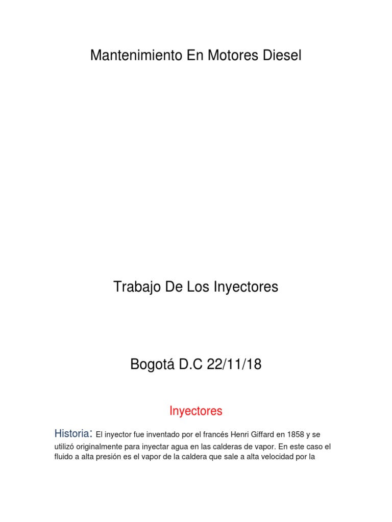 Historia: El inyector fue inventado por el francés Henri Giffard en 1858 y se