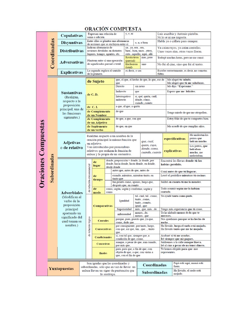 Las oraciones compuestas pueden ser coordinadas, subordinadas o yuxtapuestas según la