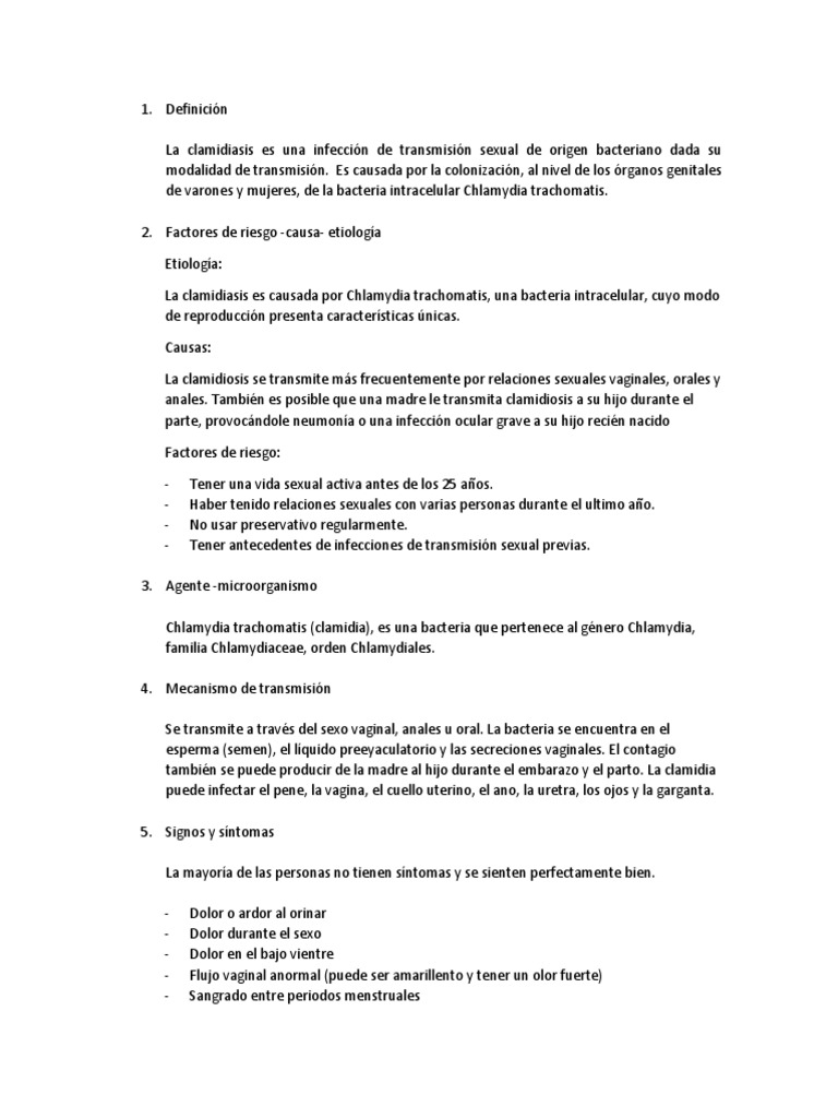 La clamidiasis es causada por Chlamydia trachomatis, una bacteria intracelular, cuyo modo