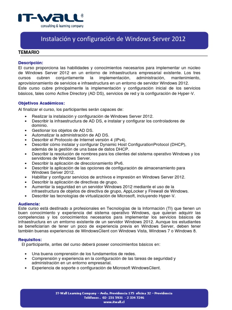 Este curso cubre principalmente la implementación y configuración inicial de los servicios