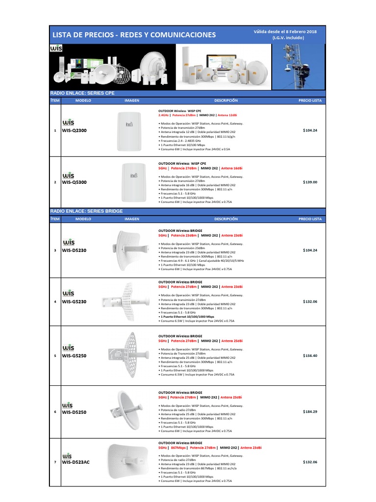 LISTA DE PRECIOS - REDES Y COMUNICACIONES (I.G.V. incluido)