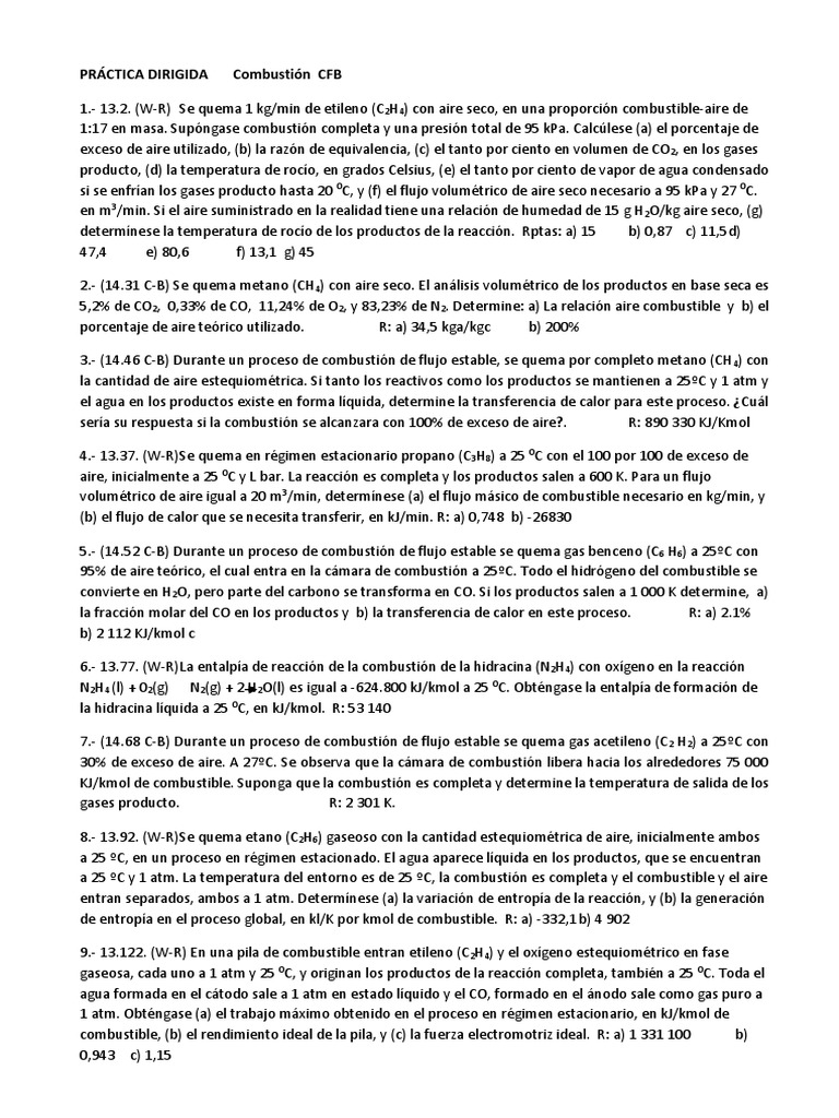 1.- 13.2. (W-R) Se quema 1 kg/min de etileno (C2H4) con aire seco, en una proporción combustible-aire de