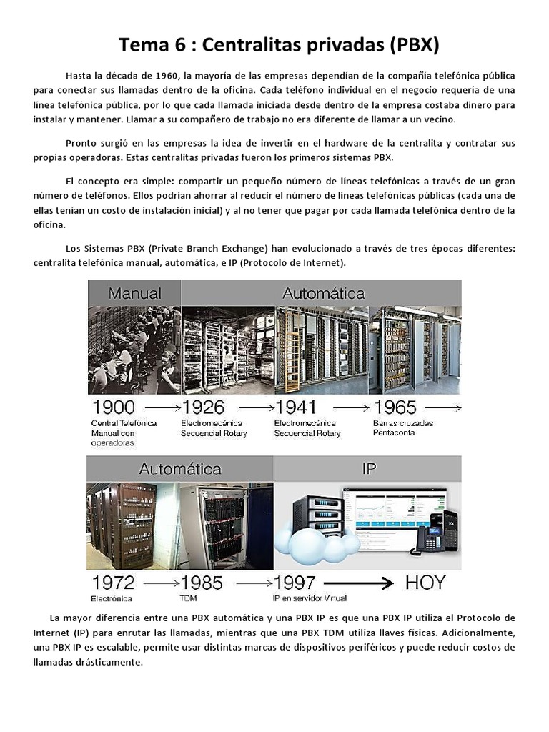 Los Sistemas PBX (Private Branch Exchange) han evolucionado a través de tres épocas diferentes: