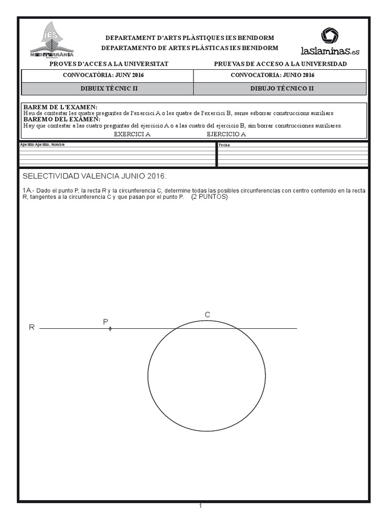 1A.- Dado el punto P, la recta R y la circunferencia C, determine todas las posibles circunferencias con centro contenido en la recta