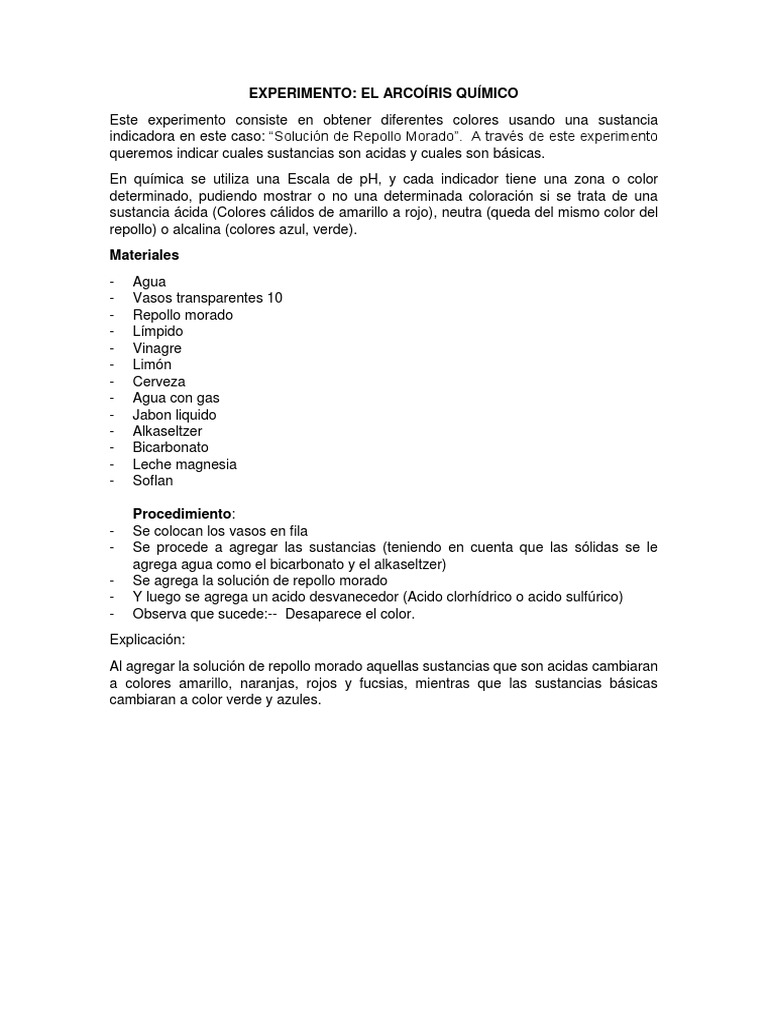 Este experimento consiste en obtener diferentes colores usando una sustancia