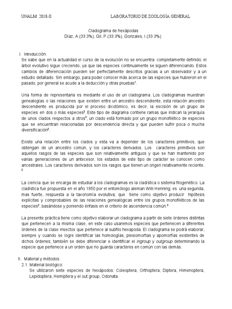 UNALM: 2018-II LABORATORIO DE ZOOLOGÍA GENERAL
